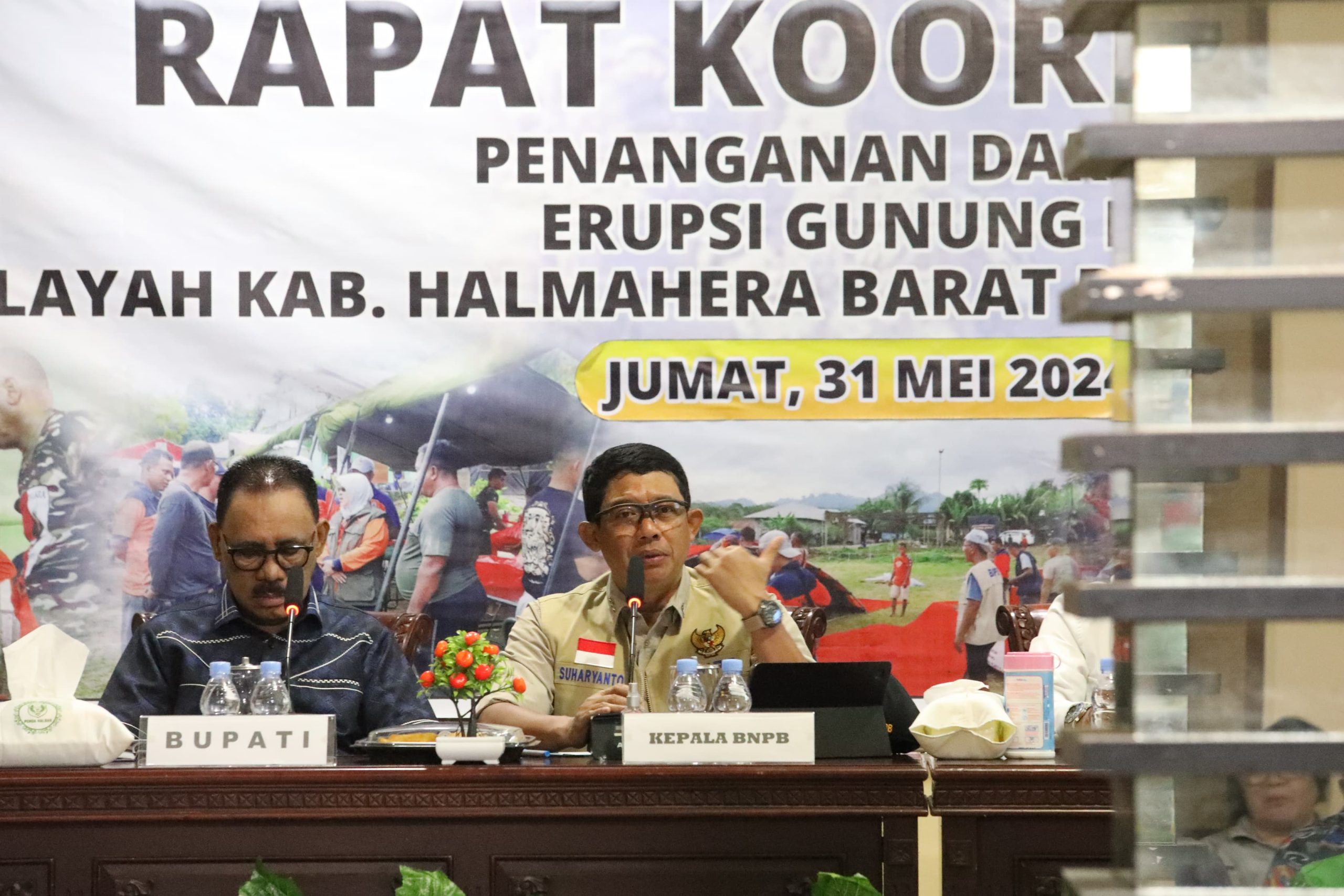 Hal itu disampaikan Suharyanto saat memimpin Rapat Koordinasi Penanganan Darurat Dampak Erupsi Gunungapi Ibu di Kantor Bupati Halmahera Barat, Jailolo, Maluku Utara, Jumat (31/5).