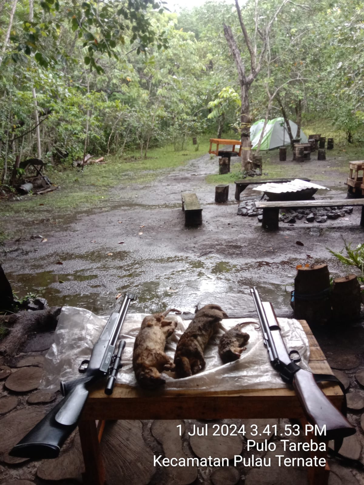Buktinya, Minggu (30/6/2024) malam  sekira pukul 00.00 WIT, ada lima warga yang diketahui berasal dari Halmahera Barat menembak puluhan ekor Kus-kus mata biru di kawasan pulau  Tareba. Dari jumlah satwa yang ditembak, tiga ekor di antarnya mati dan dibawa pulang.