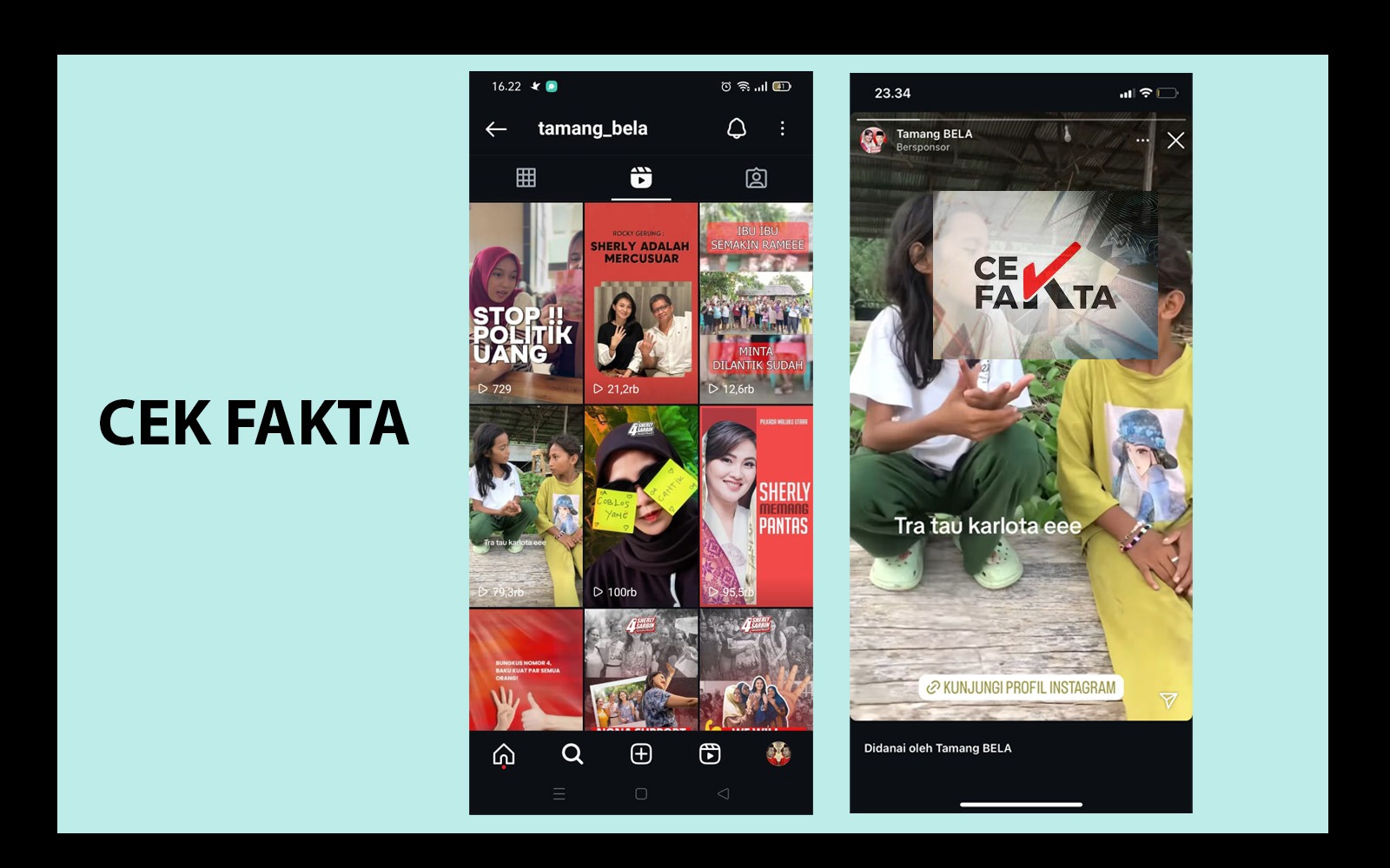 Berdasarkan hasil Cek Fakta (benar) video berdurasi 21 detik yang diposting oleh akun laman Facebook dan Instagram @TamangBela dengan caption: “Semua orang… Tua, Muda, Laki-laki, perempuan, deng anak kecil ramai membicarakan Calon Gubernur Maluku Utara yang Cantik Sherly Laos” merupakan video original atau asli yang diproduksi oleh Tim Konten kampanye media sosial paslon nomor urut 04, Sherly-Sarbin. (TF)