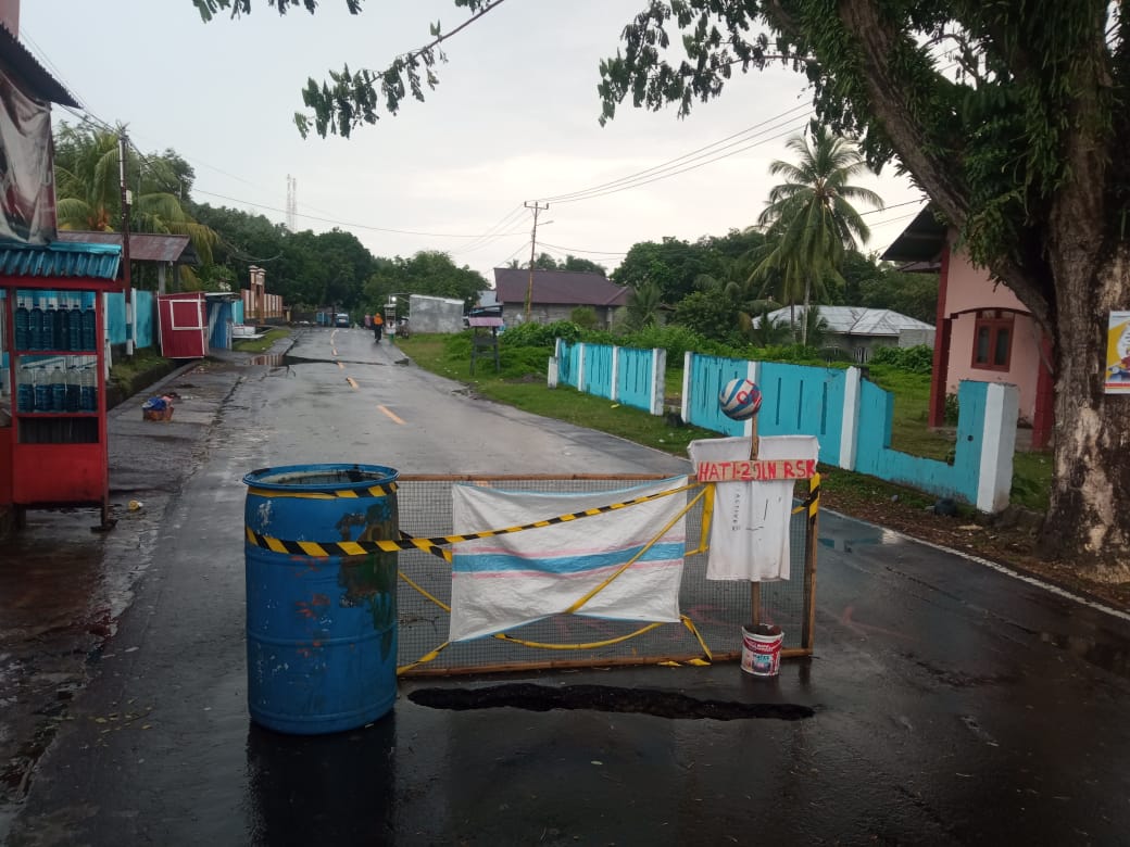 “Fondasi saluran air di bawah jalan itu sudah rusak. Karena itu, aspal badan jalan langsong dan berlubang hingga satu meter ke tanah. Sedangkan panjang lubangnya sekitar satu meter lebih,” tambah Amir.