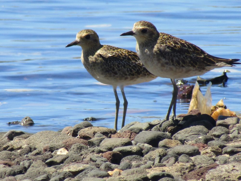 Seakan tidak mau kalah, cerek kernyut (Pluvialis fulva) dan trinil ekor-kelabu (Tringa brevipesis)–dua burung pantai spesies migrasi, mencicit dari arah laut di atas tumpukan batu yang layaknya benteng pelindung pesisir.