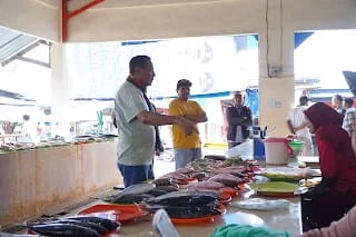 Wali Kota Tidore Kepulauan, Muhammad Sinen mengunjungi dan memantau aktivitas pasar Ikan di Desa Galala, Kecamatan Oba Utara.