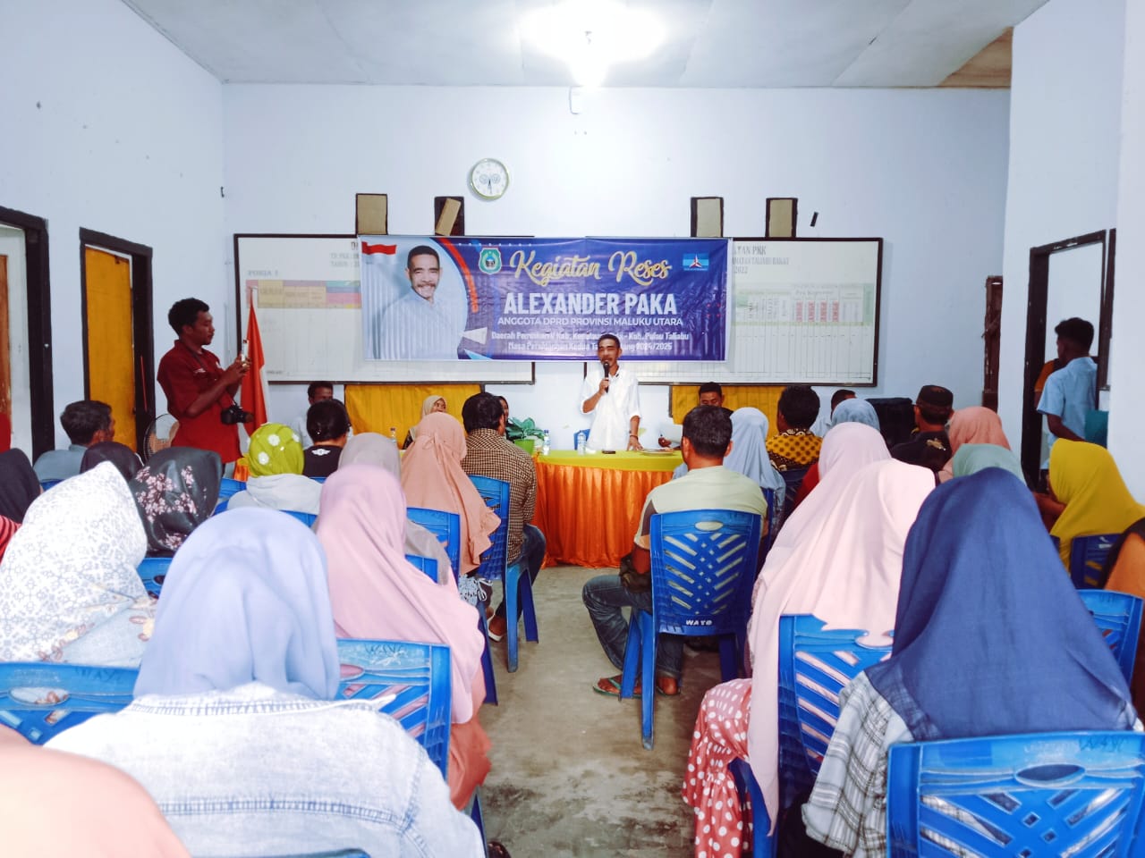 Anggota DPRD Provinsi Maluku Utara dari Daerah Pemilihan V (Kabupaten Kepulauan Sula dan Pulau Taliabu), Alexander Paka, melaksanakan kegiatan reses masa persidangan kedua tahun sidang 2024/2025 di Desa Wayo, Kecamatan Taliabu Barat, pada Sabtu, 17 Mei 2025.