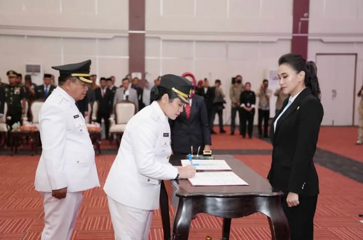 Pasangan Bupati dan Wakil Bupati Pulau Taliabu terpilih, Shalsabila Widya L. Mus dan La Ode Yasir, resmi dilantik untuk masa jabatan 2025–2030.