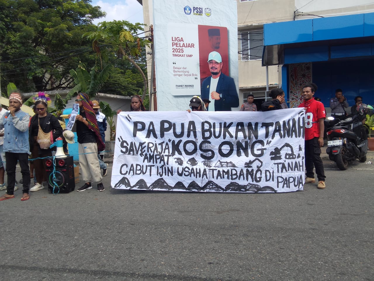 Serangkan Echy, salah satu massa aksi, mengatakan pihaknya turun ke jalan karena sejumlah perusahaan tambang di Raja Ampat. Kendati 4 dari 5 IUP tambang sudah dicabut, tapi masih ada IUP PT Gag Nikel yang saat ini belum dicabut.