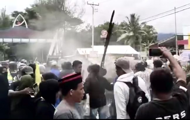 Insiden ini terjadi saat pengamanan aksi unjuk rasa di depan Kantor DPRD Halmahera Selatan.