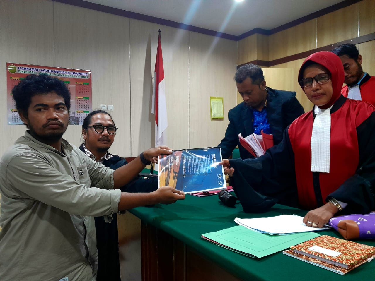 Jaringan Advokasi Tambang (Jatam) Nasional dan Simpul Jatam di Maluku Utara mengajukan Amicus Curiae atau sahabat pengadilan dalam kasus sebelas warga adat Maba Sangaji di Pengadilan Negeri Soasio, Kota Tidore Kepulauan, pada Rabu, 1 Oktober 2025. Dokumen itu diserahkan Julfikar Sangaji, Dinamisator Jatam Maluku Utara, kepada Asma Fandun, Ketua Majelis Hakim.