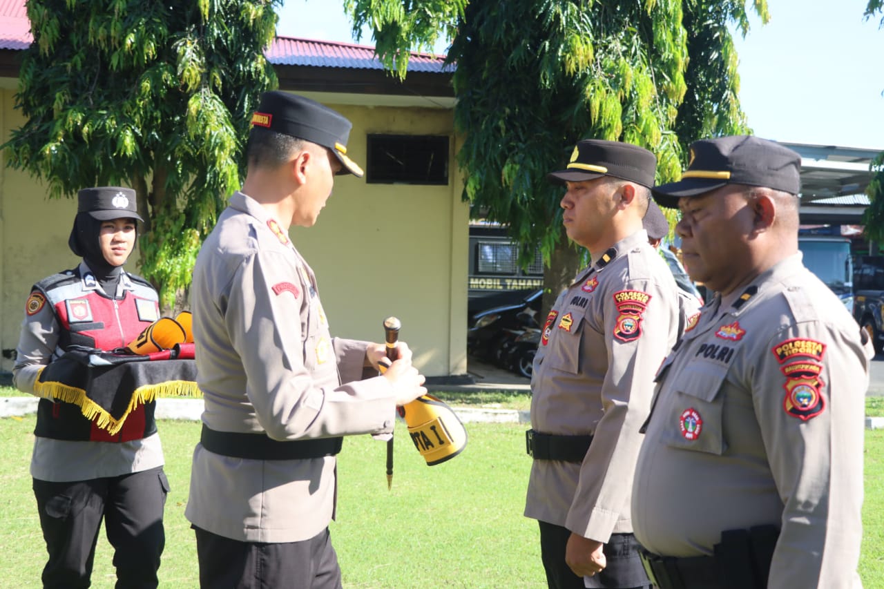 Kepolisian Resor Kota (Polresta) Tidore menggelar apel pengukuhan PAMAPTA dan Tim Negosiator Polresta Tidore, Senin, 27 Oktober 2025. Kegiatan tersebut dipimpin langsung oleh Kapolresta Tidore, AKBP Heru Budiharto, S.I.K., M.I.K., di Lapangan Apel Mako Polresta Tidore, Kelurahan Goto, Kecamatan Tidore, Kota Tidore Kepulauan.