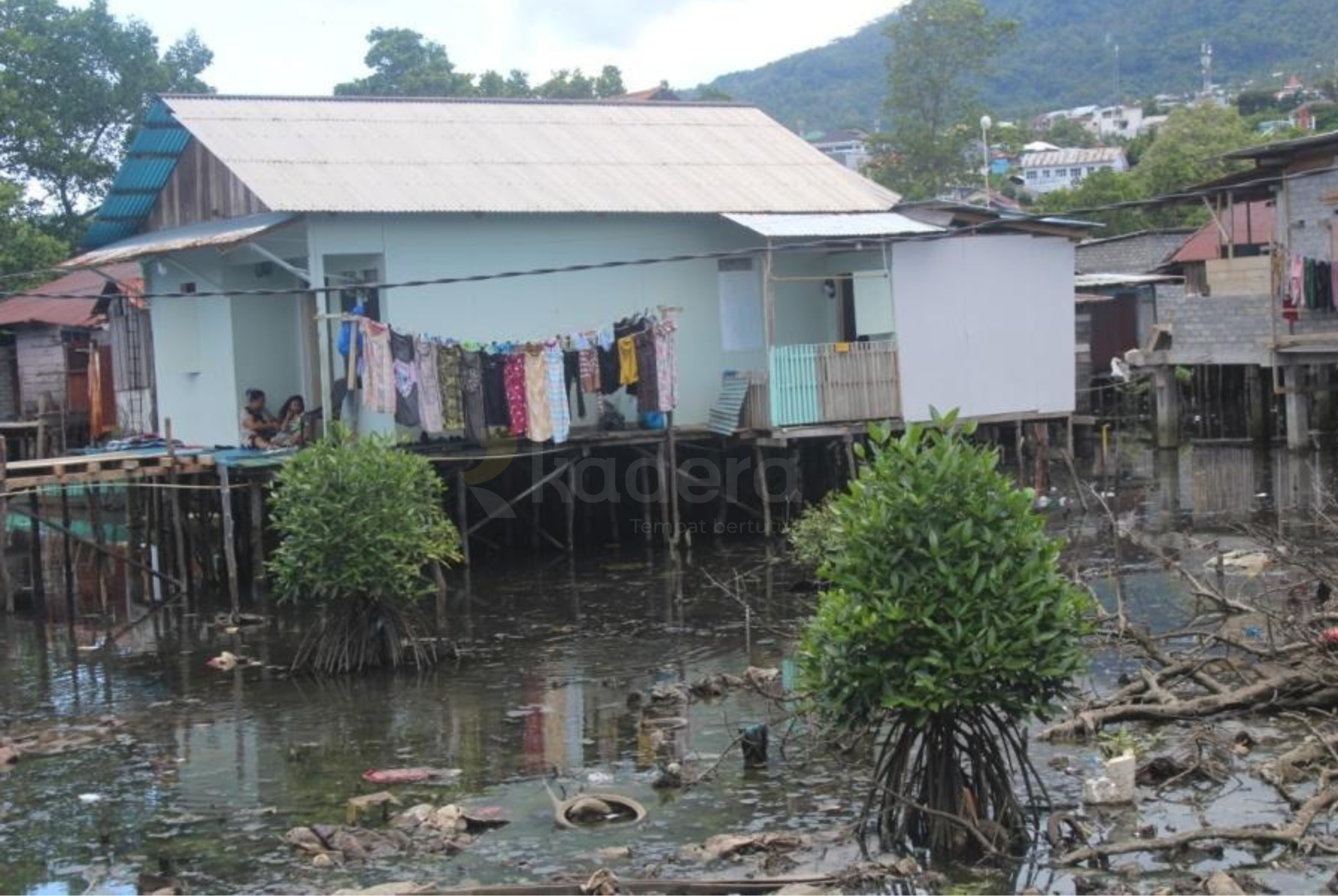 DI DEPAN rumah triplek bercat jingga berdiri sekitar lima meter dari pesisir pantai Kelurahan Gambesi, Ternate Selatan, Idrus Fabanyo, sibuk membersihkan pelataran rumah anaknya. Ia memicingkan mata memandangi laut, tepat dua barisan mangrove berdiri rapuh di ujung pantai.