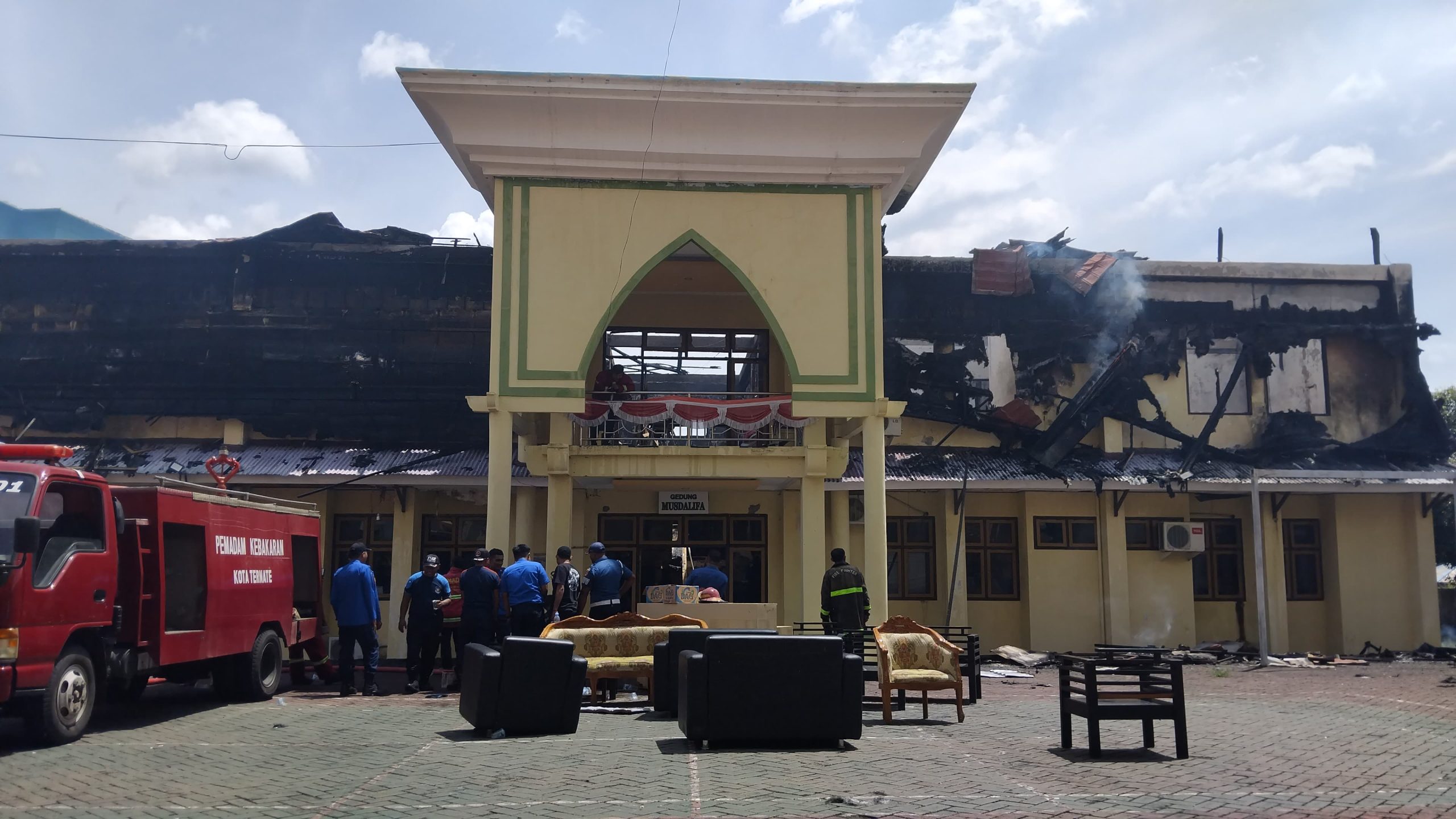 Gedung dua lantai Musdalifa Asrama Haji di Kelurahan Ngade, Ternate Selatan, ludes terbakar pada Selasa, 18 November 2025, sekitar pukul 10.30 WIT.