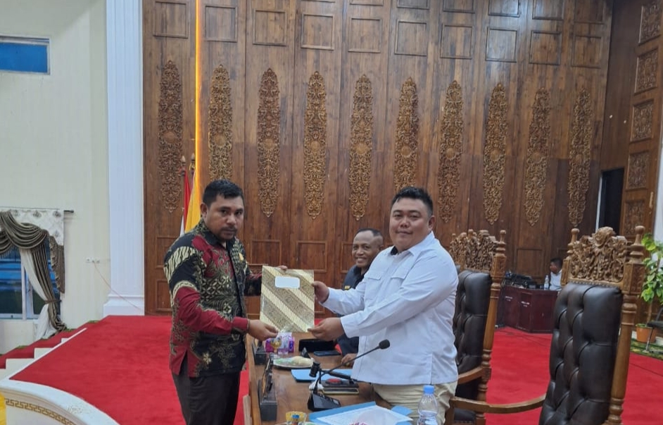 Fraksi Perjuangan dan Kebangkitan Demokrasi (PKD) DPRD Kabupaten Pulau Taliabu, Maluku Utara, menyampaikan pandangan umum terhadap Rancangan Peraturan Daerah tentang Rencana Pembangunan Jangka Menengah Daerah (RPJMD) 2025–2029 dalam rapat paripurna DPRD, Kamis, 28 November 2025.
