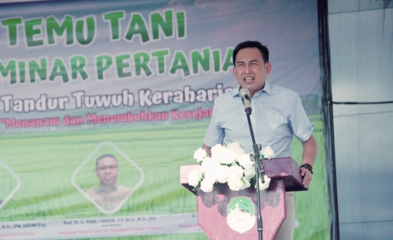 Pesan tersebut ia sampaikan saat membuka Temu Tani dan Seminar Pertanian pada peringatan HUT Transmigrasi Wasile ke-43 di Desa Sidomulyo, Sabtu, 29 November 2025.