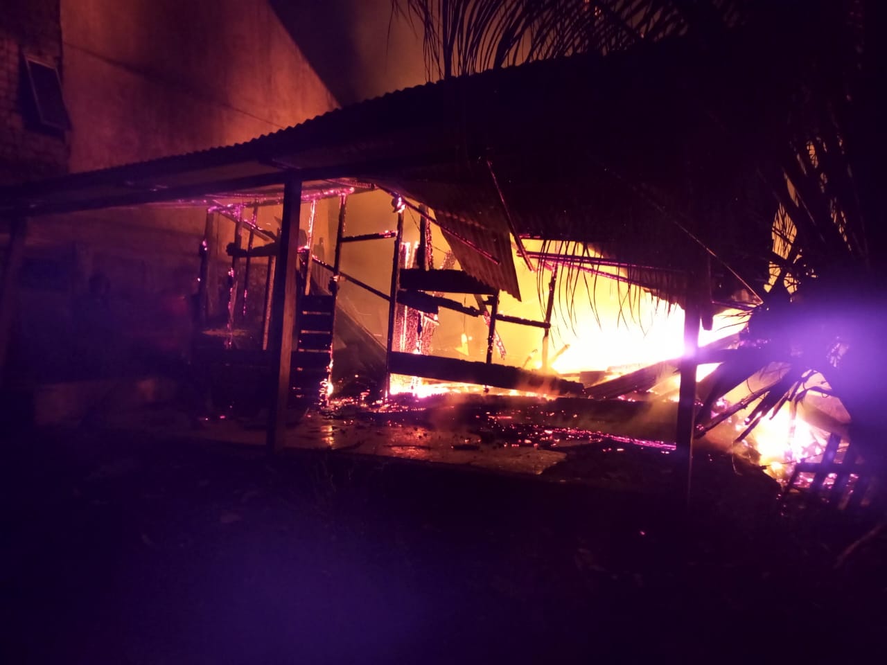 “Tadi ada 4 orang di rumah, termasuk denga saya. Tiba-tiba api keluar di dalam kamar yang sedang dislot, sekitar pukul 11. Pintu kamar tara [tidak] pernah buka. Tapi torang [kami] sudah tara [tidak] tahu lagi,” kata Imam.