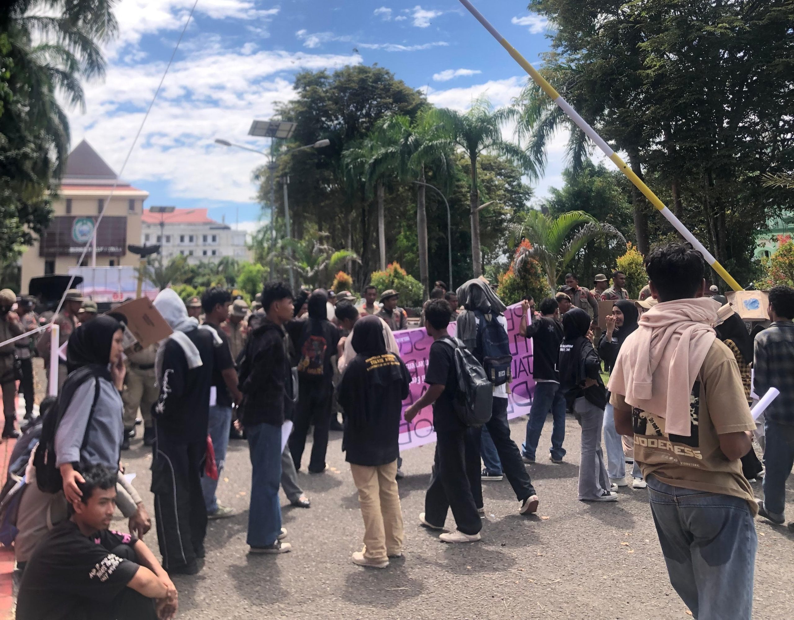 Dalam aksi itu, massa membentangkan spanduk bertuliskan, “Pemprov Segera Tuntaskan Ruas Jalan Payahe–Dehepodo” untuk menagih janji pembangunan ruas jalan tersebut yang hingga kini belum juga rampung.