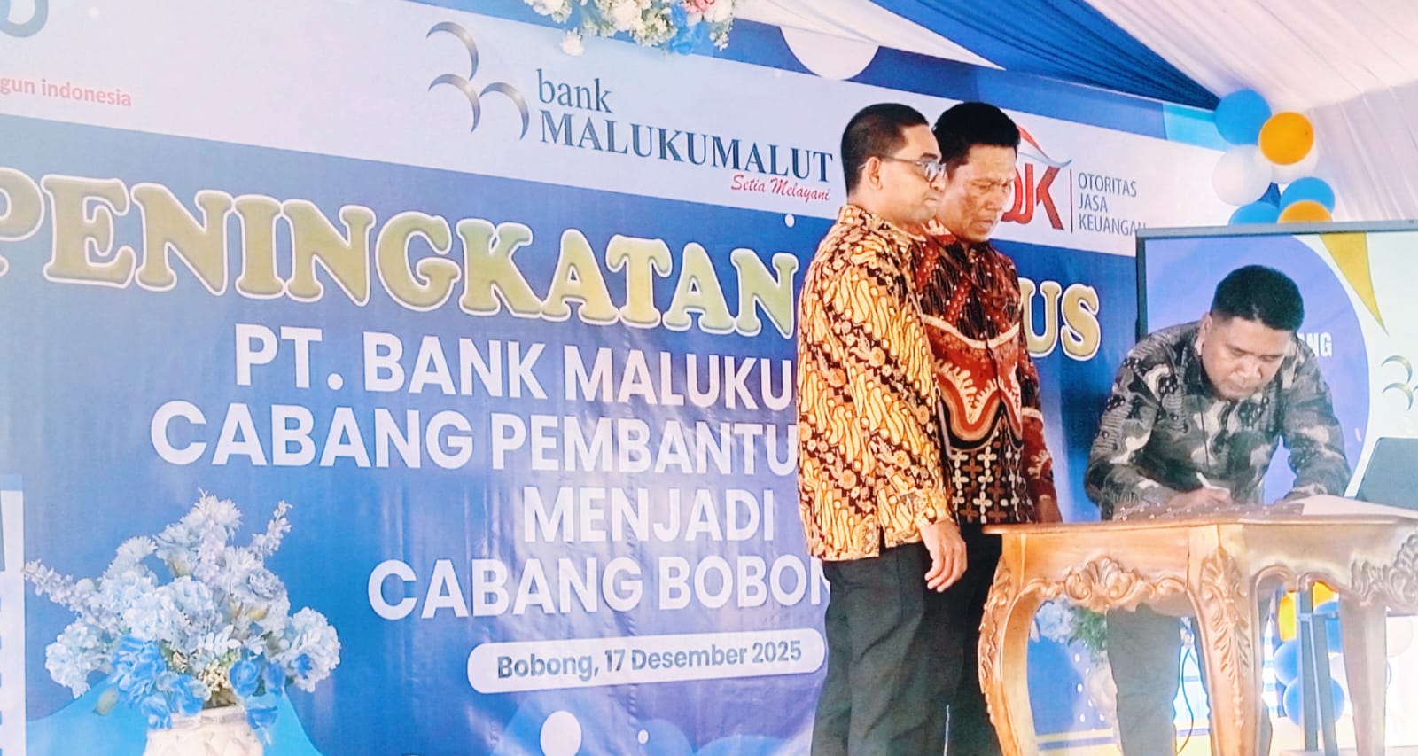PT Bank Pembangunan Daerah Maluku-Maluku Utara (Bank Maluku-Malut) resmi meningkatkan status Kantor Cabang Pembantu (KCP) Bobong menjadi Kantor Cabang Bobong.