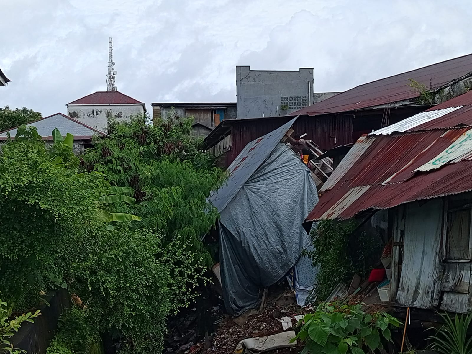 Satu dari dua rumah warga yang terdampak tanah longsor, ambruk ke dalam barangka atau kali mati di Kelurahan Kalumpang, Ternate Tengah, pada Rabu pagi, 7 Januari 2026.