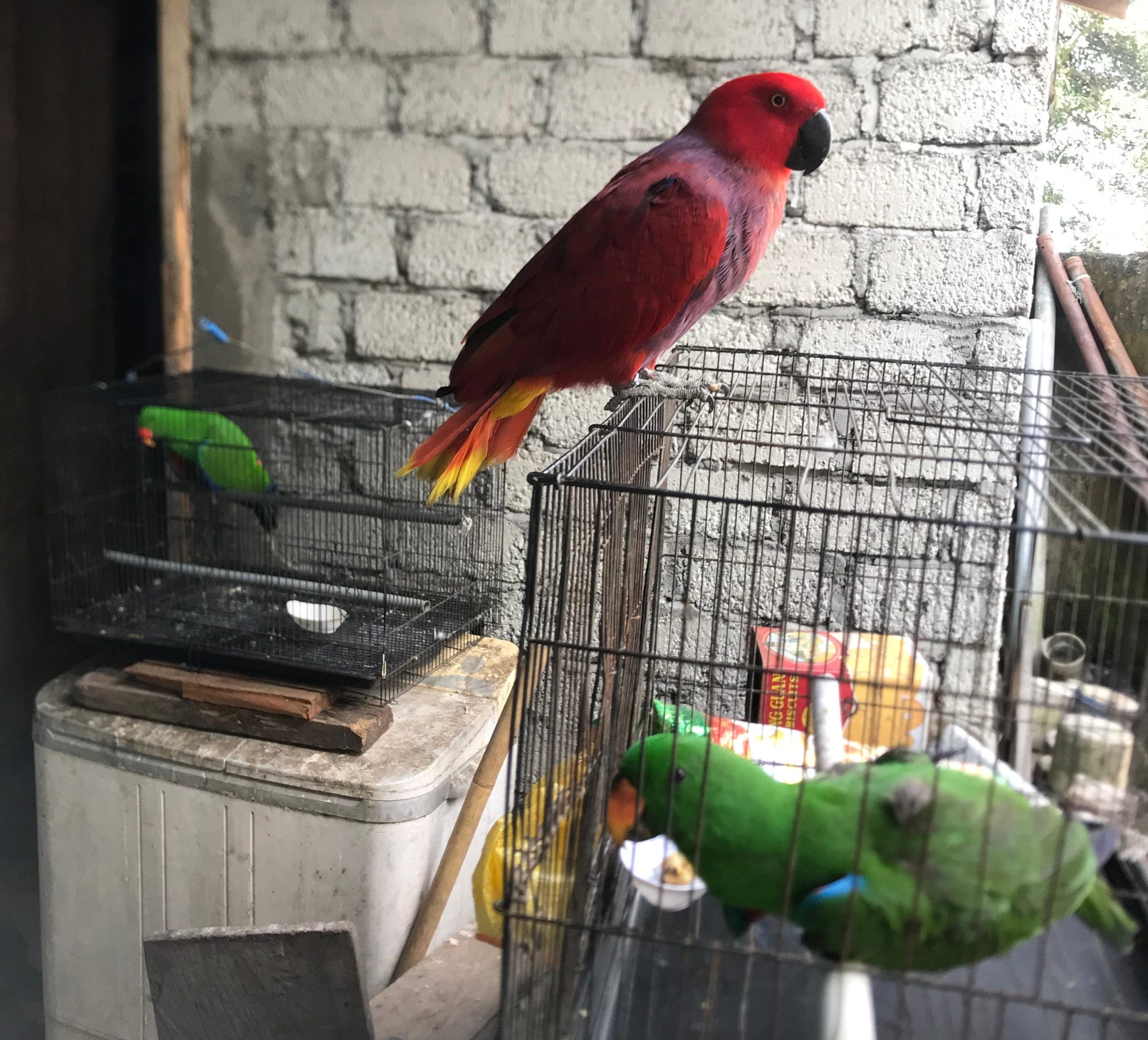 Tiga ekor nuri bayan-maluku peliharaan warga di Kelurahan Kulaba, Ternate Barat, 30 Januari 2025. Foto: Rajuan Jumat/Kadera.id