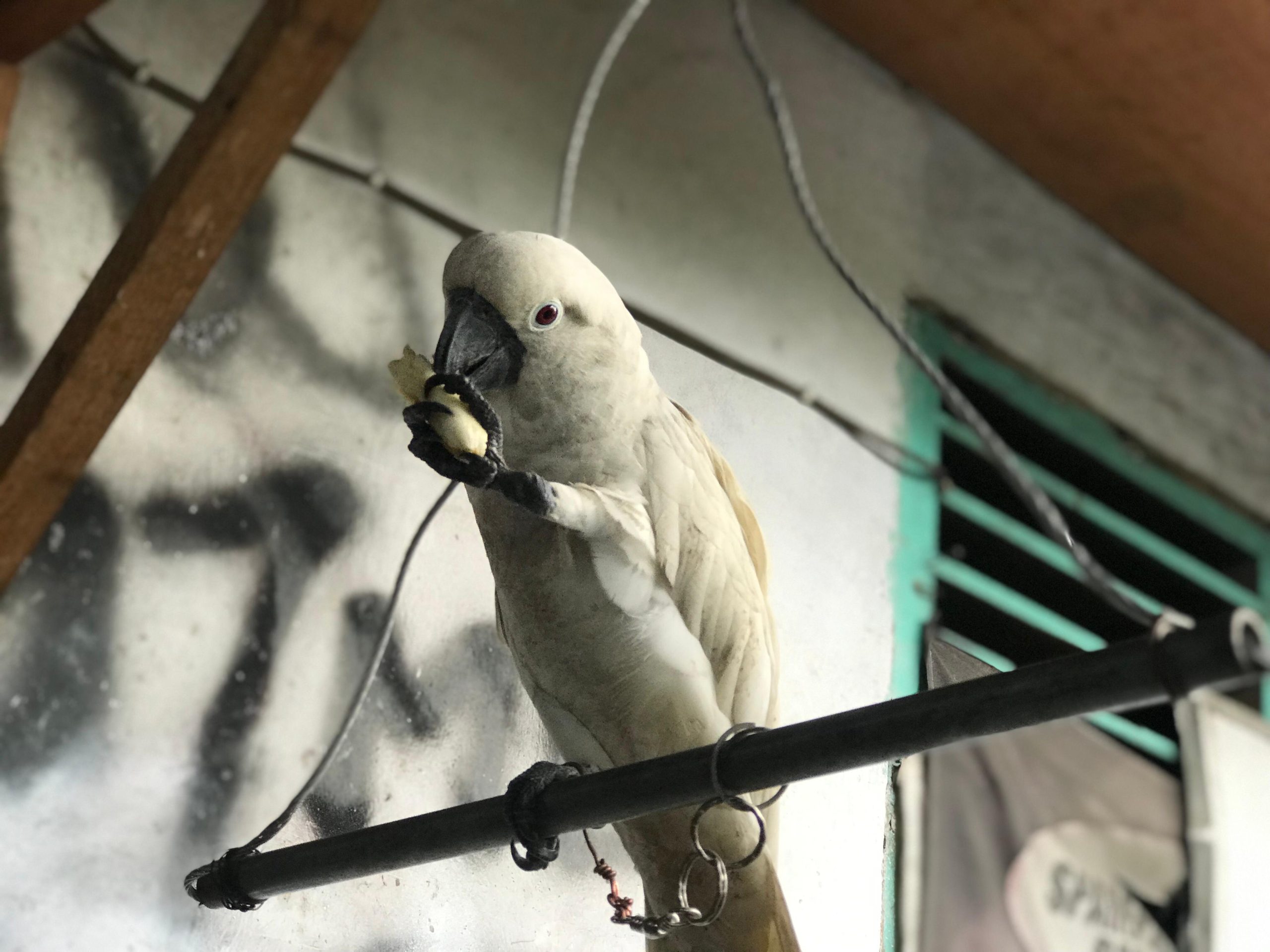 Tiga ekor nuri bayan-maluku peliharaan warga di Kelurahan Kulaba, Ternate Barat, 30 Januari 2025. Foto: Rajuan Jumat/Kadera.id