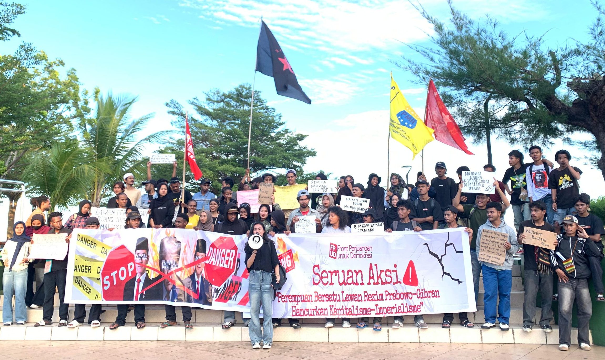 Puluhan massa dari Front Perjuangan untuk Demokrasi (FPUD) Maluku Utara menggelar aksi demonstrasi di pelataran Landmark, depan Kantor Wali Kota Ternate pada Ahad, 8 Maret 2026. Aksi yang mengusung tema “Perempuan Bersatu Lawan Rezim Prabowo–Gibran, Hancurkan Kapitalisme–Imperialisme” itu digelar untuk memperingati Hari Perempuan Internasional (International Women’s Day).