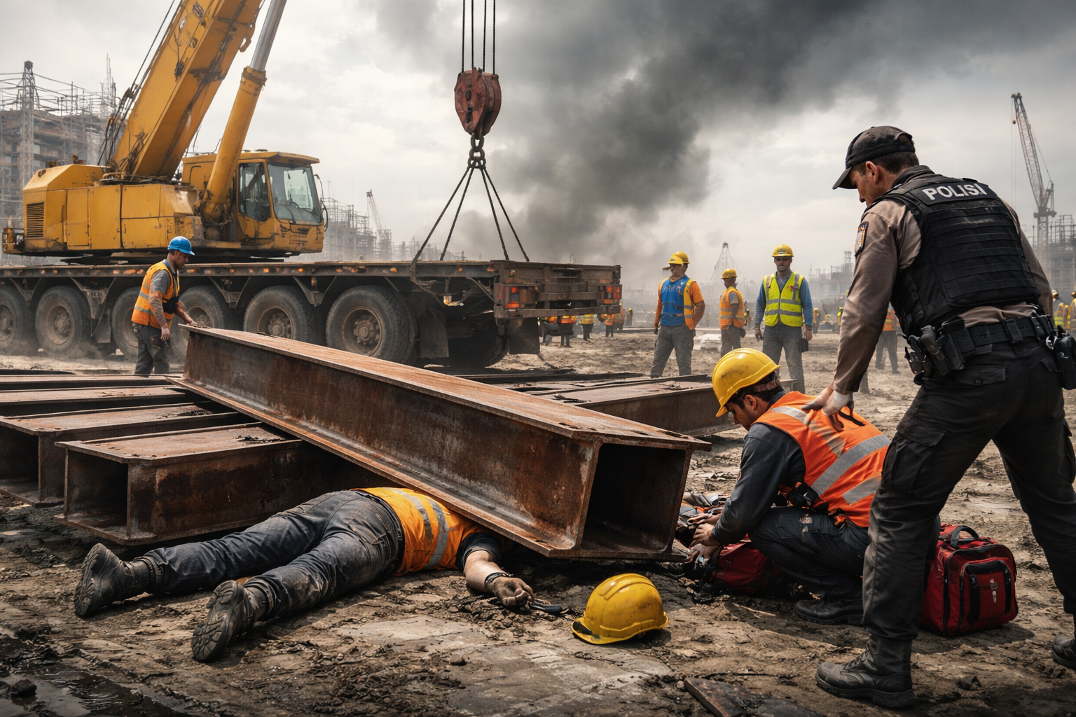 “Dan pada saat yang bersamaan angin bertiup kencang menghempas besi H-Beam bersamaan dengan korban sehingga jatuh ke samping kiri mobil truk trailer. Setelah terjatuh, korban tertimpa besi H-Beam yang beratnya 5 ton,” kata Amir kepada Kadera, Selasa, 17 Maret 2026.