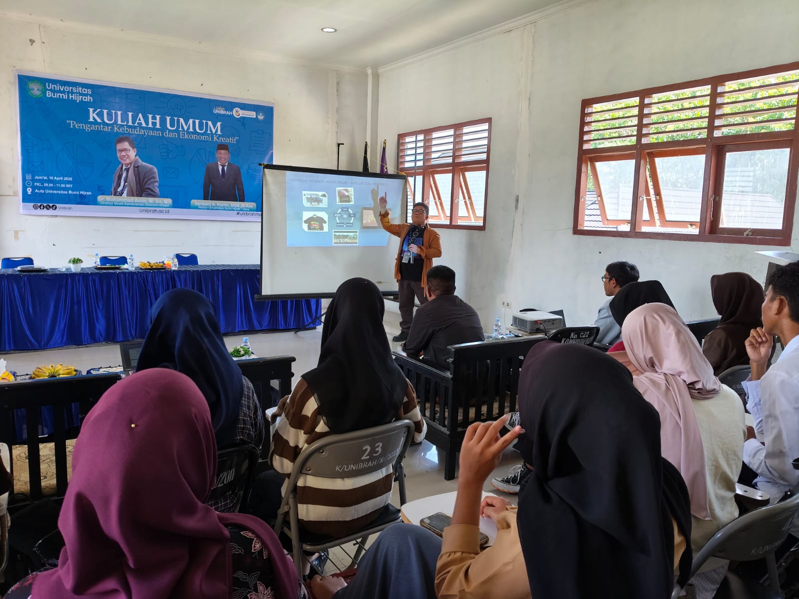 Antusias mahasiswa Universitas Bumi Hijrah Tidore (UNIBRAH) begitu terasa saat mengikuti kuliah umum yang disampaikan Direktur Musik Kementerian Pariwisata dan Ekonomi Kreatif Republik Indonesia, Mohammad Amin, di aula kampus, Jumat, 10 April 2026.