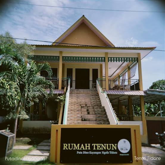 Sebuah rumah tenun berlantai dua berdiri memanjang di Kelurahan Soasio, Kecamatan Tidore, Kota Tidore Kepulauan. Bangunan beton itu tampak sederhana dari luar, namun menyimpan denyut kreativitas yang tak pernah berhenti. Lantai pertama menjadi ruang kerja para penenun, sementara lantai kedua difungsikan sebagai galeri yang memamerkan hasil karya—mulai dari kain tenun hingga berbagai aksesori perempuan.