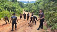 Anggota Polres Taliabu Perbaiki Jalan Rusak di Gunung Sampe